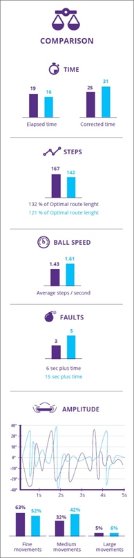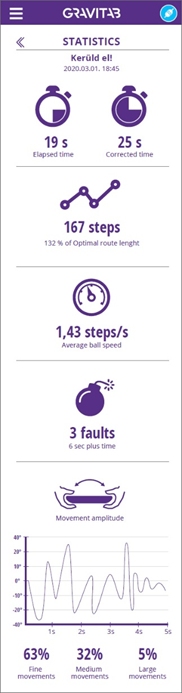 - A tábla döntésének amplitúdója – grafikonon ábrázolva, a finom, a közepes és a nagy mozdulatok százalékos aránya